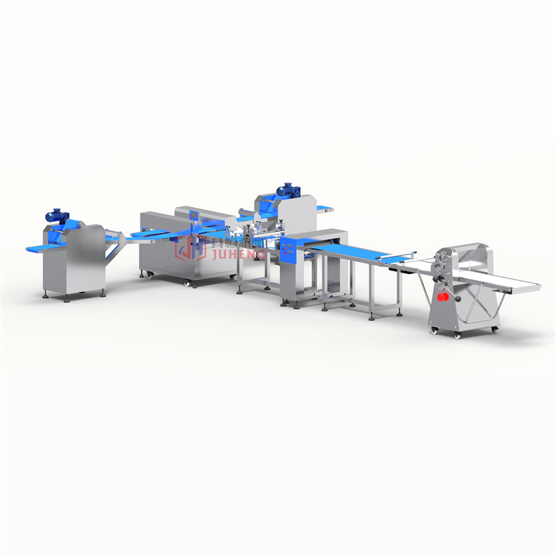 The Croissant Production Line is a space-efficient, automated solution designed to streamline the production of laminated croissant dough forms. Tailored for small to mid-scale bakeries, this line transforms raw laminated dough into consistent, perfectly layered croissants with minimal manual effort, bridging the gap between artisanal quality and industrial efficiency. Its compact footprint ensures seamless integration into limited kitchen spaces, while intuitive controls and food-safe materials prioritize ease of use, hygiene, and durability. Unlike manual shaping— which often leads to inconsistent layering and size variations—this line uses precision-engineered rollers and cutters to deliver uniform, ready-to-bake croissant forms, enhancing productivity, reducing labor costs, and preserving the buttery, flaky texture that defines premium croissants. Whether for classic straight croissants, pain au chocolat, or almond croissants, it adapts to diverse recipes, making it an essential tool for bakers seeking to scale production without compromising on taste or appearance.